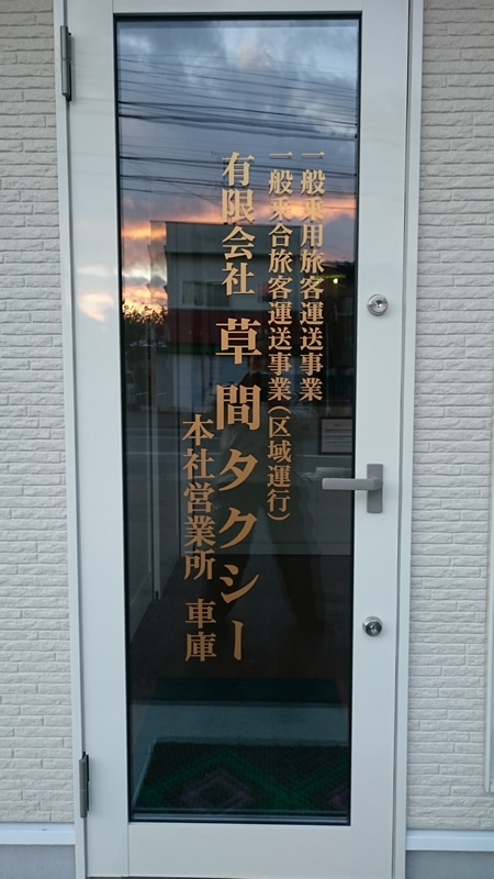 製作例:会社入り口ドアに会社名と業務内容をカッティングシールで